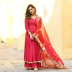 Add a touch of elegance to your ethnic collection with our Pink Orange Shades Gota Work Salwar Suit. Featuring exquisite Gota work detailing on vibrant pink and orange hues, this ensemble exudes timeless charm, perfect for festive occasions and weddings. Crafted with premium quality fabric for comfort and style.
