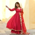 Elevate your ethnic wardrobe with our exquisite Pink Orange Shades Gota Work Salwar Suit! Crafted with precision and care, this stunning ensemble features a harmonious blend of vibrant pink and orange hues, accentuated by intricate Gota work detailing. The traditional yet contemporary design lends a timeless charm, making it perfect for festive occasions, weddings, or cultural celebrations. The set comprises a flowing kurta adorned with delicate Gota work, paired with a complementing salwar and a dupatta to complete the look. Tailored to perfection using premium quality fabric, this salwar suit ensures comfort without compromising on style. Embrace the beauty of Indian craftsmanship and make a statement with our Pink Orange Shades Gota Work Salwar Suit!